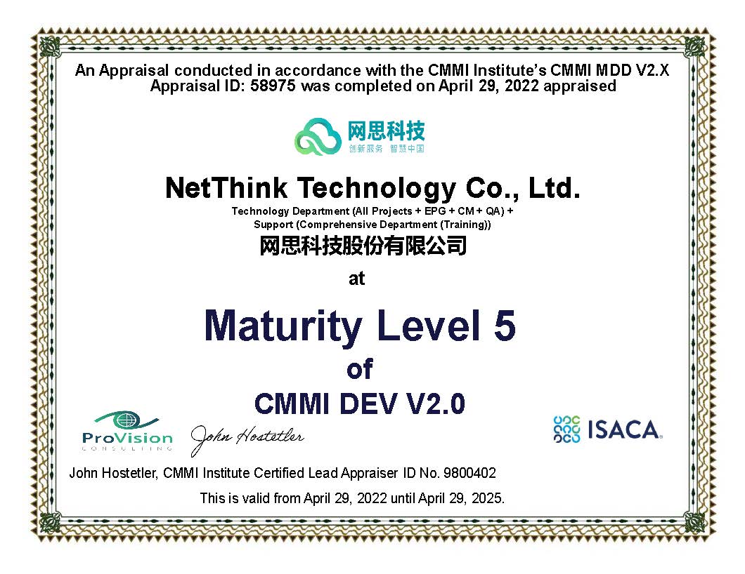 6月10日,环球(中国)HUANQIU官方网站成功通过了全球软件领域最高级别CMMI V2.0 五级认证,证明环球(中国)HUANQIU官方网站在软件开发领域的持续投入和技术实力再次获得该国际权威机构的高度认可。CMMI全称为Capability Maturity Model Integration,即能力成熟度模型集成,是国际上用于评价软件企业能力成熟度和过程规范性的一项重要标准。CMMI共设5个级别,从1